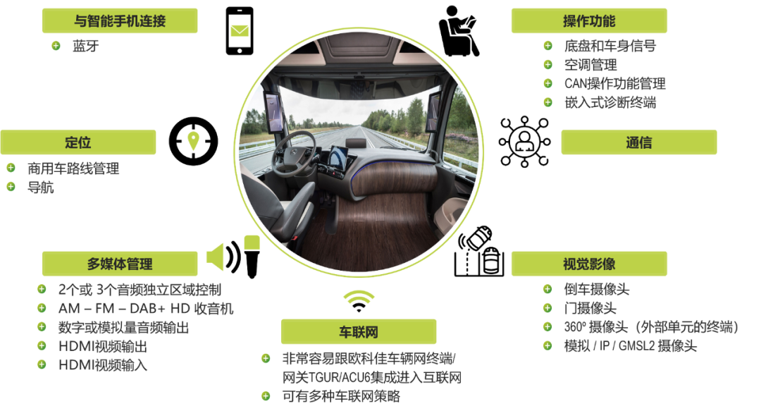 作為歐科佳最新研發(fā)的智慧結(jié)晶,ACTIVI數(shù)字座艙不僅能為駕駛員和乘客帶來前所未有的智能、便捷體驗(yàn),而且還可通過支持多種車聯(lián)網(wǎng)策略,為用戶構(gòu)建全面聯(lián)網(wǎng)、集中控制和高效溝通的商用車生態(tài)系統(tǒng)。這一創(chuàng)新成果將有力推動商用車行業(yè)的數(shù)智化轉(zhuǎn)型,引領(lǐng)行業(yè)邁入全新的智能化時代。